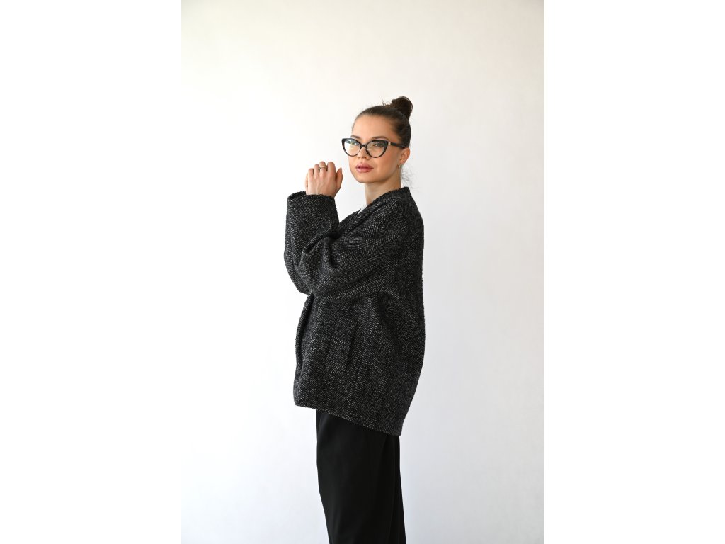 Modelka na fotce měří 168 cm. Na sobě má velikost S a kabátek je jí volnější.