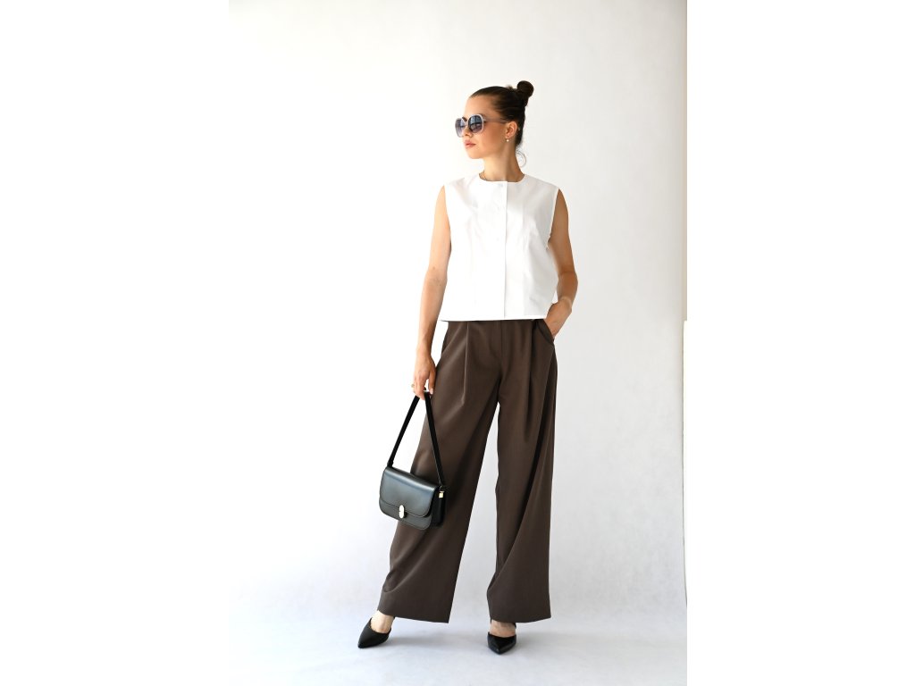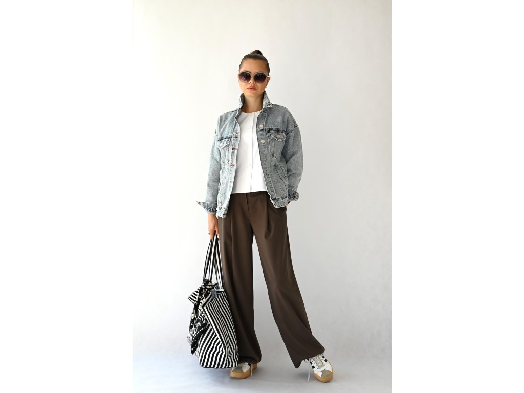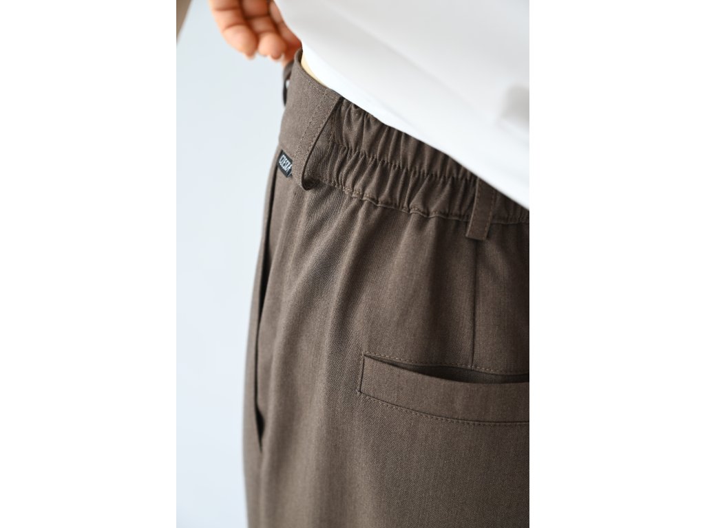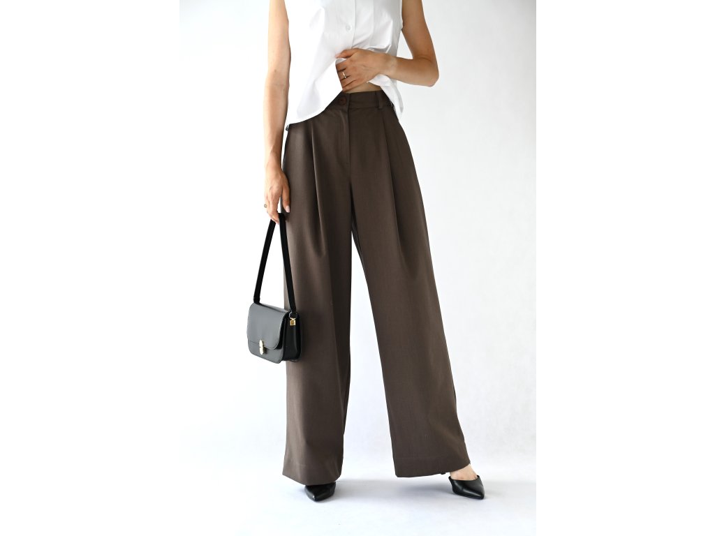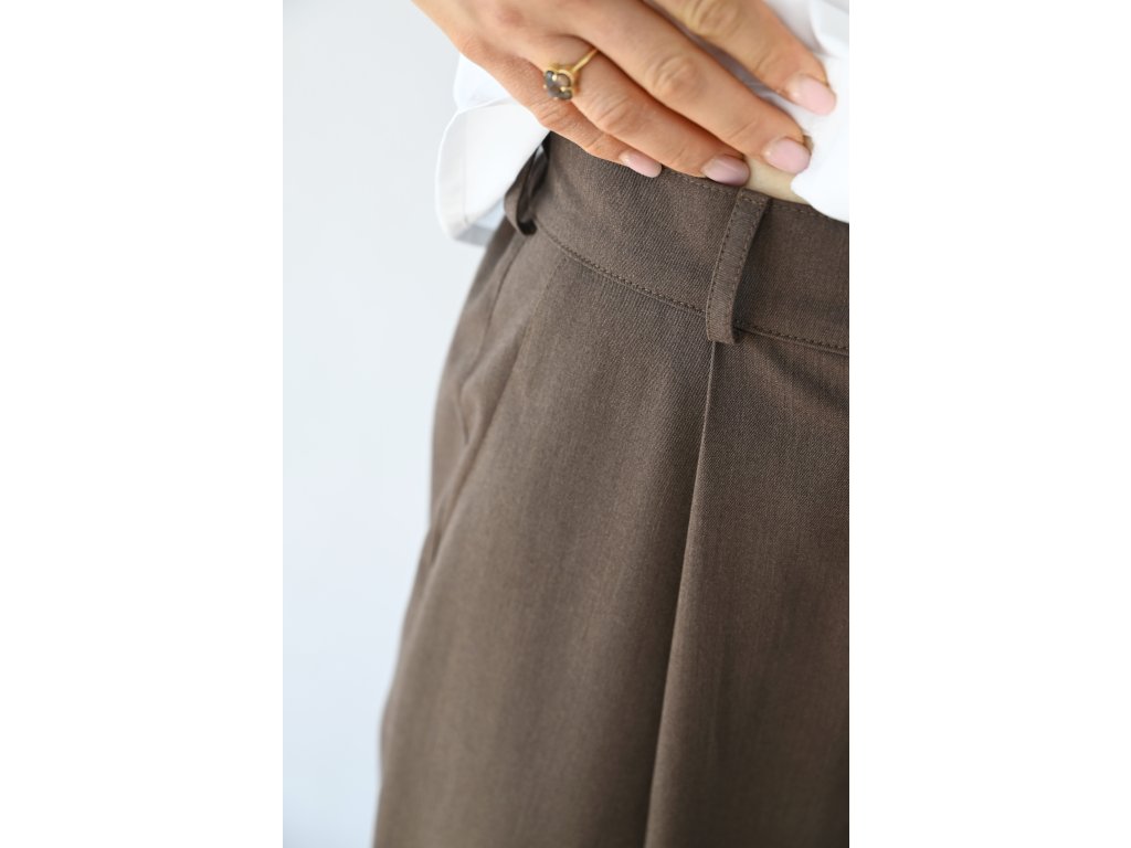 Kalhoty Heather mají volný, lehce bokový klasický střih se sníženým sedem. Střih je volný. Zapínání je na zip a knoflík. Sklady na předním díle. Kapsy na předním díle a na zadním vymazlené výpustkové. Do pásku na zadním díle je všitá široká guma, kalhoty tak pohodlně sednou v pase. Materiál ze kterého jsou kalhoty ušity je velmi kvalitní oblekový materiál. Díky složení látky se kalhoty nemačkají a opravdu krásně se nesou.