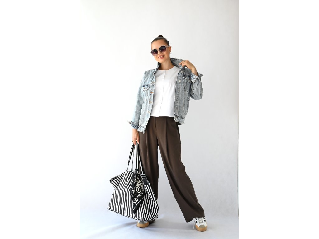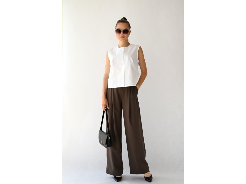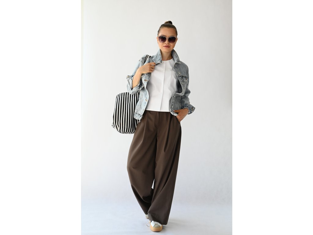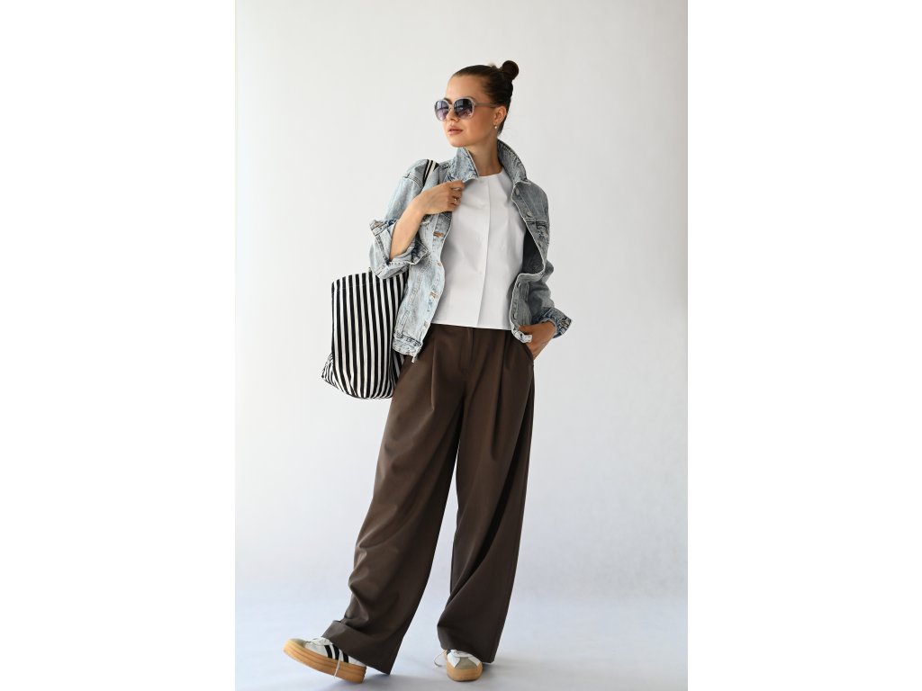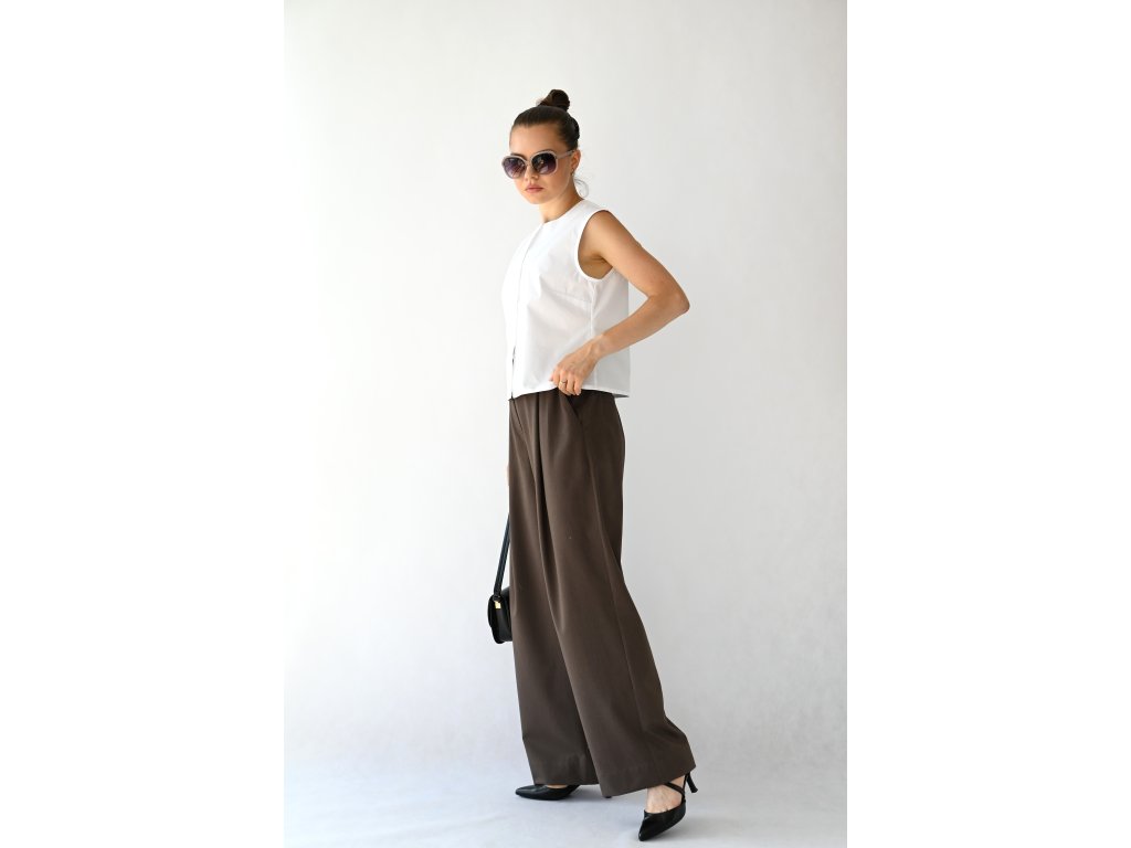 Kalhoty Heather mají volný, lehce bokový klasický střih se sníženým sedem. Střih je volný. Zapínání je na zip a knoflík. Sklady na předním díle. Kapsy na předním díle a na zadním vymazlené výpustkové. Do pásku na zadním díle je všitá široká guma, kalhoty tak pohodlně sednou v pase. Materiál ze kterého jsou kalhoty ušity je velmi kvalitní oblekový materiál. Díky složení látky se kalhoty nemačkají a opravdu krásně se nesou.