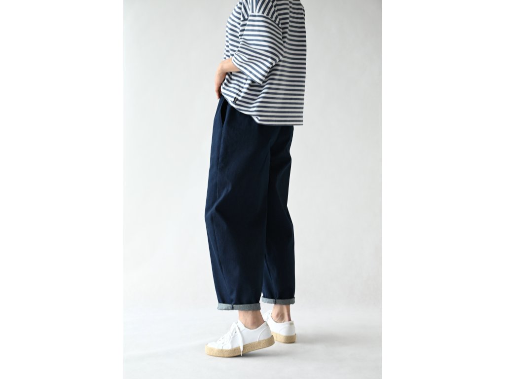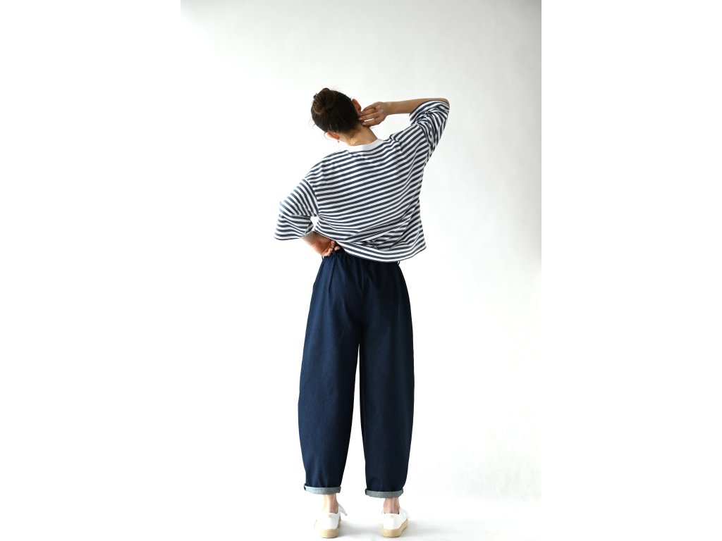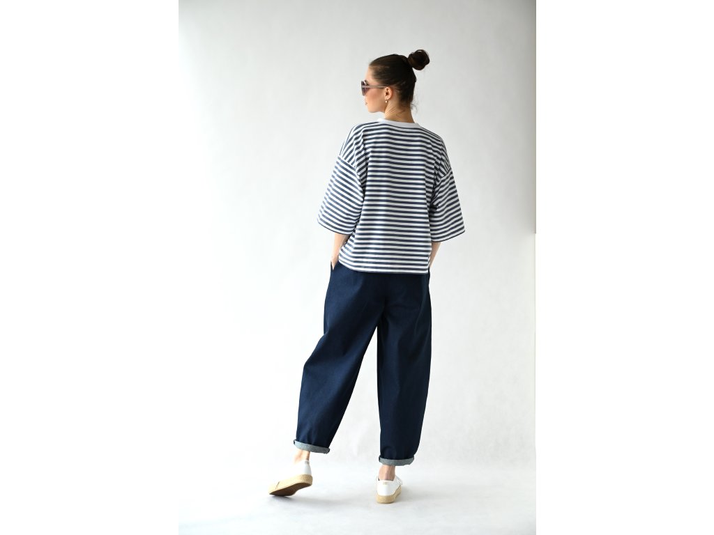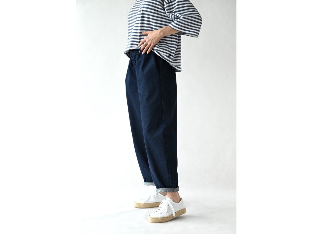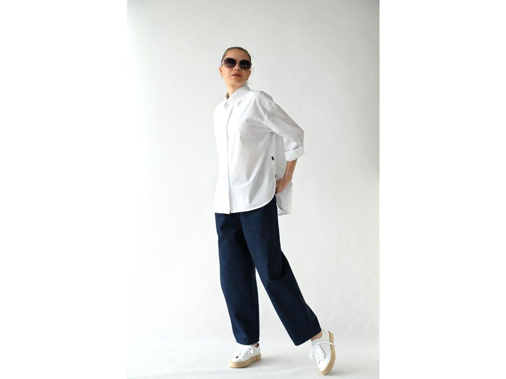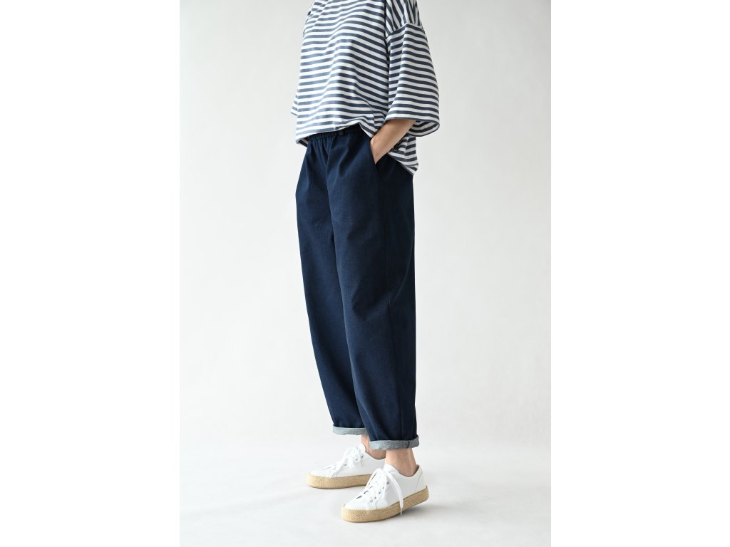 Kalhoty Kami mají volný barrel střih, který se směrem dolů zužuje. Mají kapsy na předním díle a v pase širokou pohodlnou gumu a poutka na pásek. Konec nohavic je podšitý, aby hezky držel tvar.