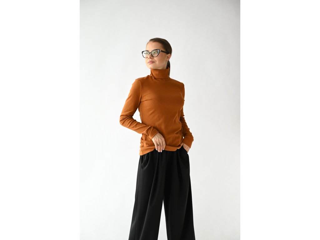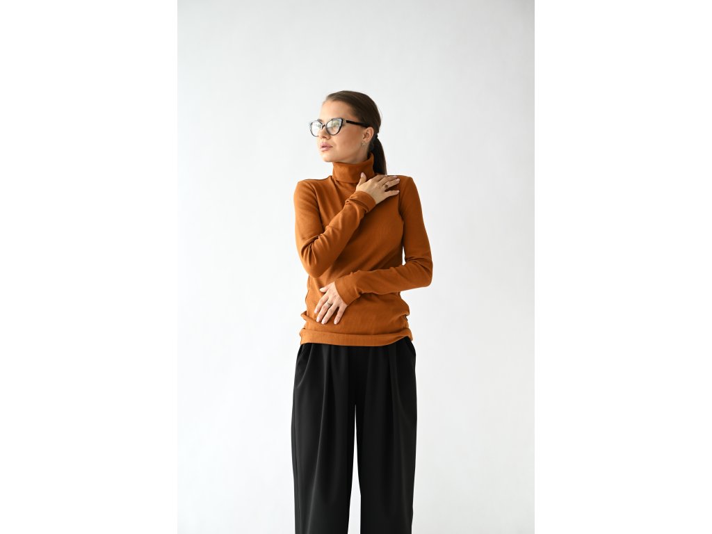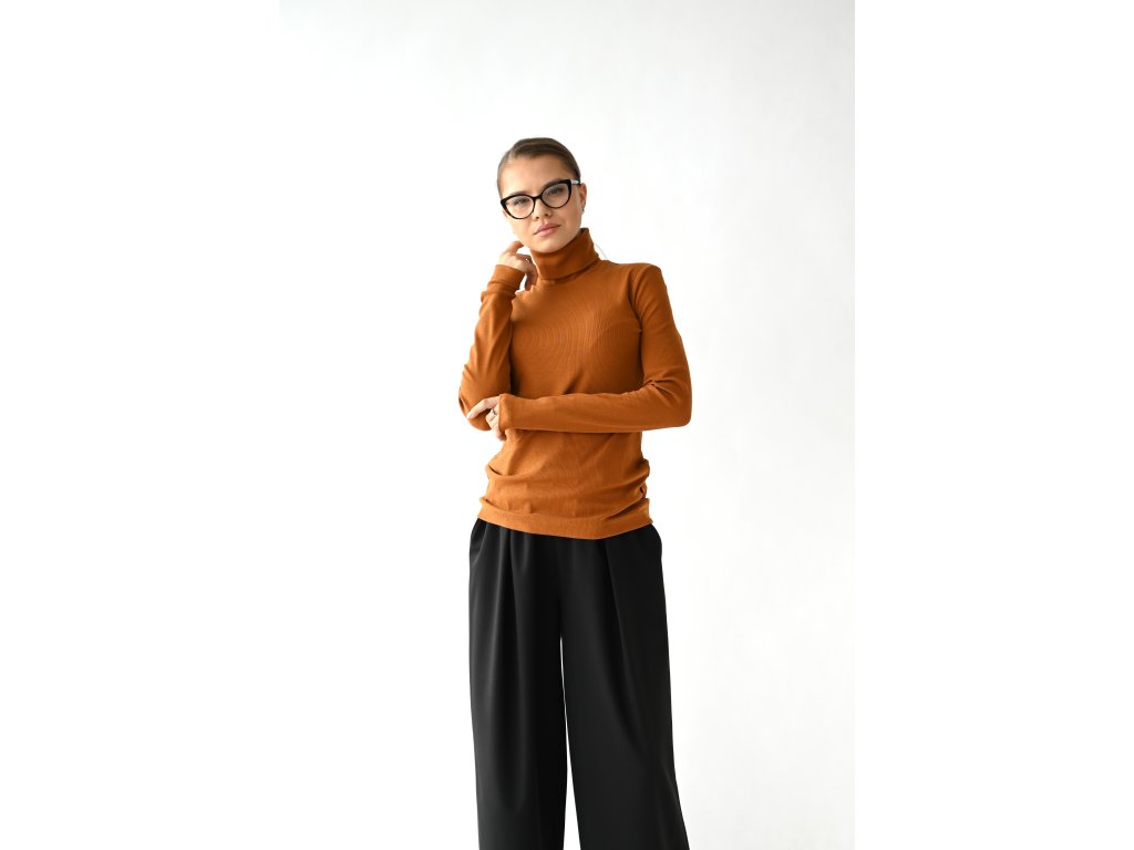 Základ šatníku minimalistky je rolák. Tento je ušitý z krásně pružného a jemně žebrovaného úpletu.
