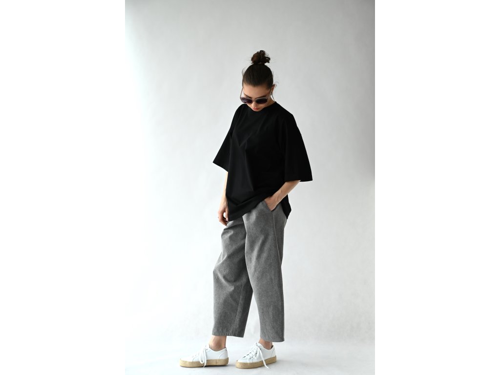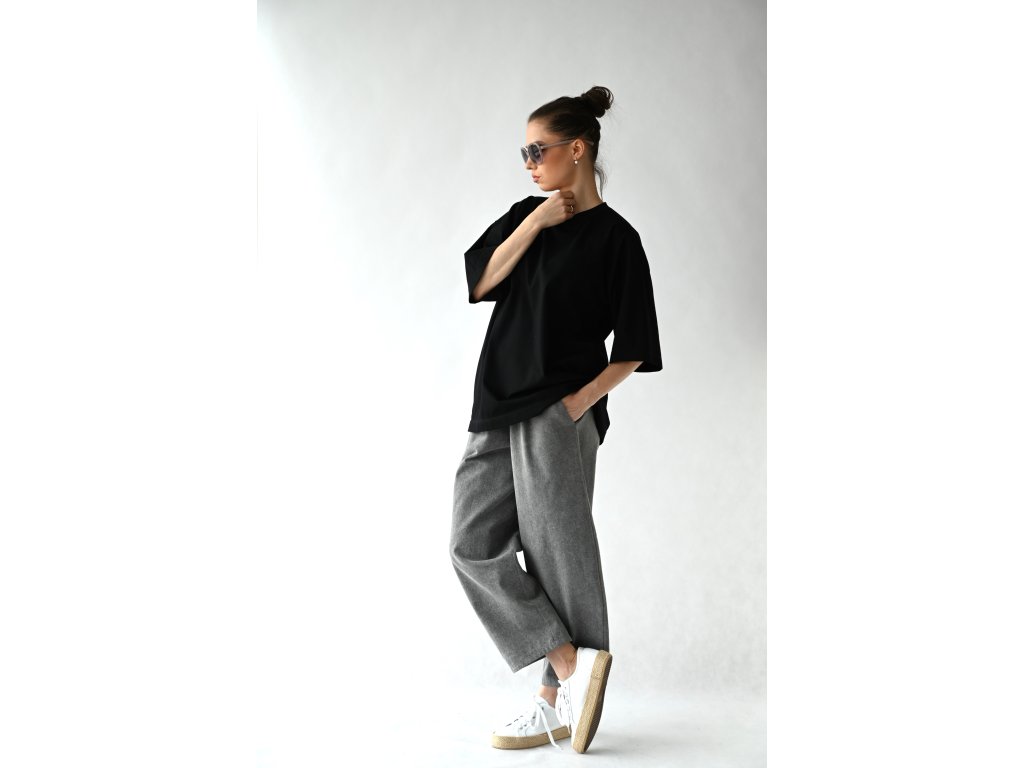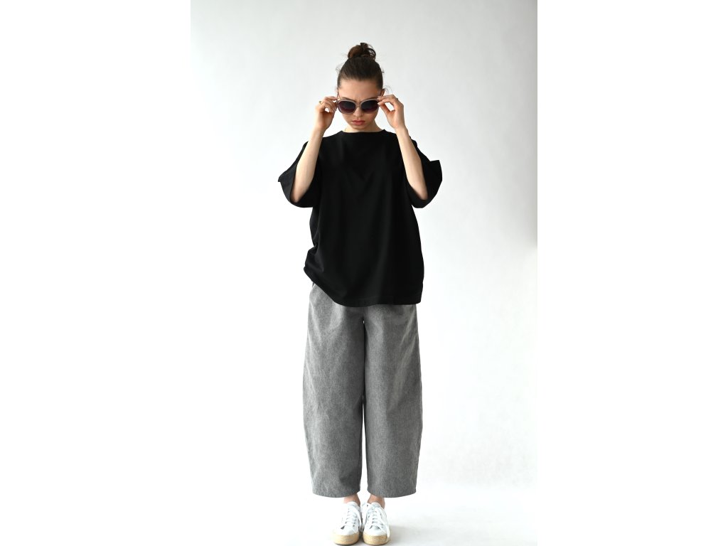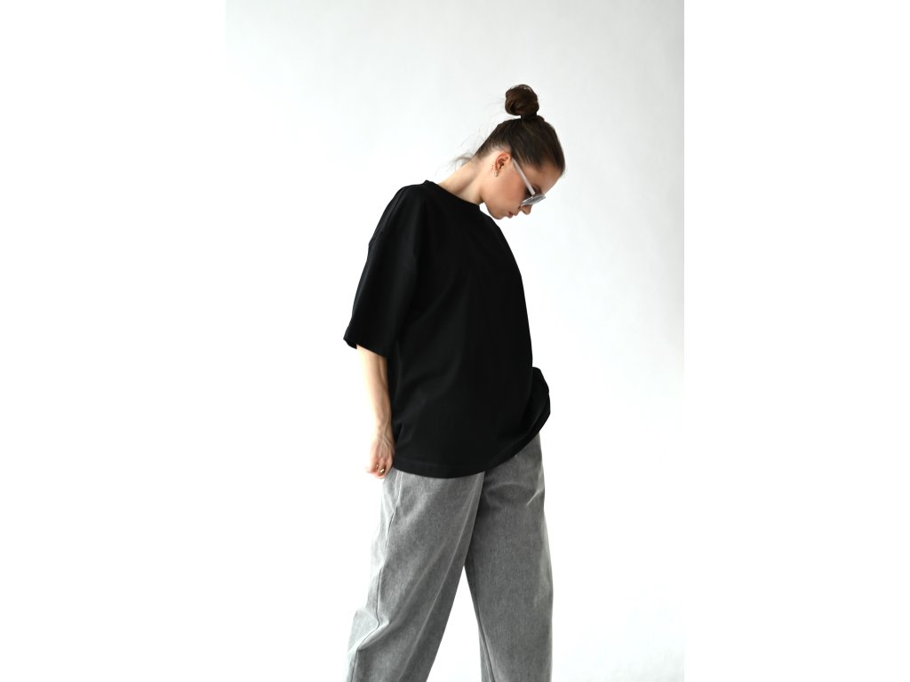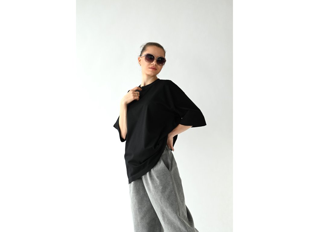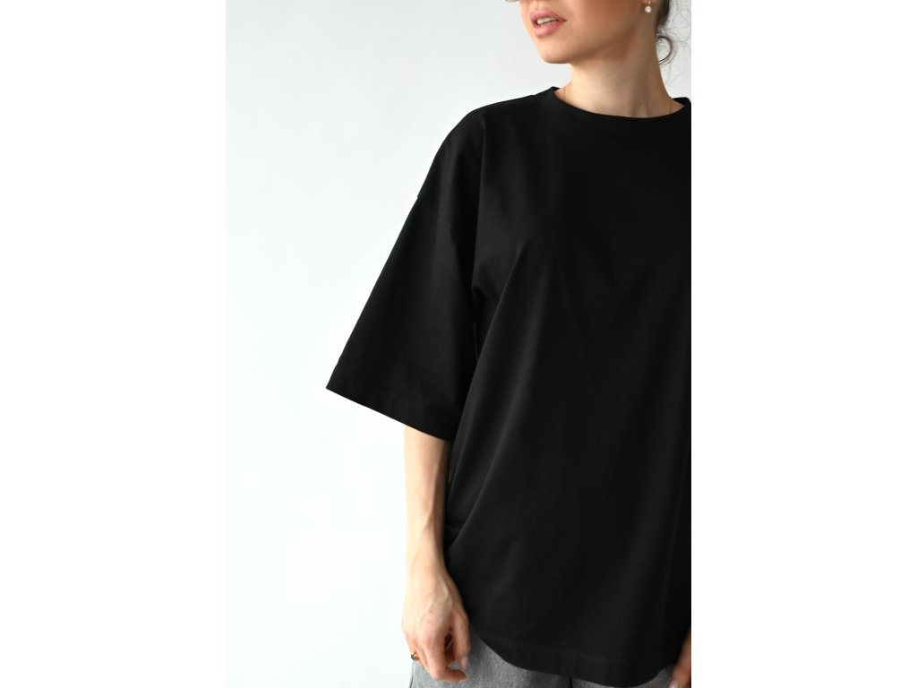 T-shirt top ušitý z čistě černé tričkoviny s certifikátem Oeko-tex.