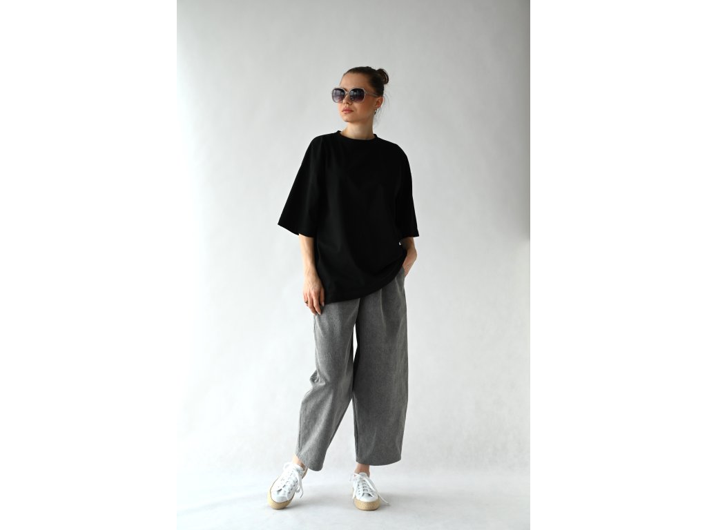Top je volného klasického téčkového střihu, se spadeným ramenem. Délka je prodloužená. Rukáv je taky delší a sahá pod loket. Pokud jste dlouho hledaly oversize tričko trendového střihu, našli jste.