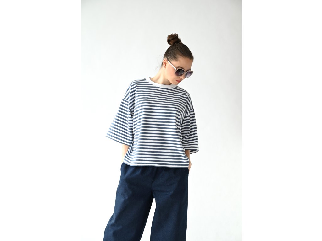 T-shirt top ušitý z kvalitní pruhované tričkoviny s certifikátem Oeko-tex.
