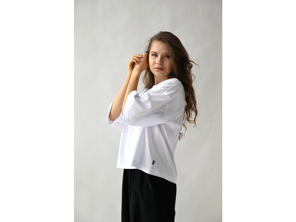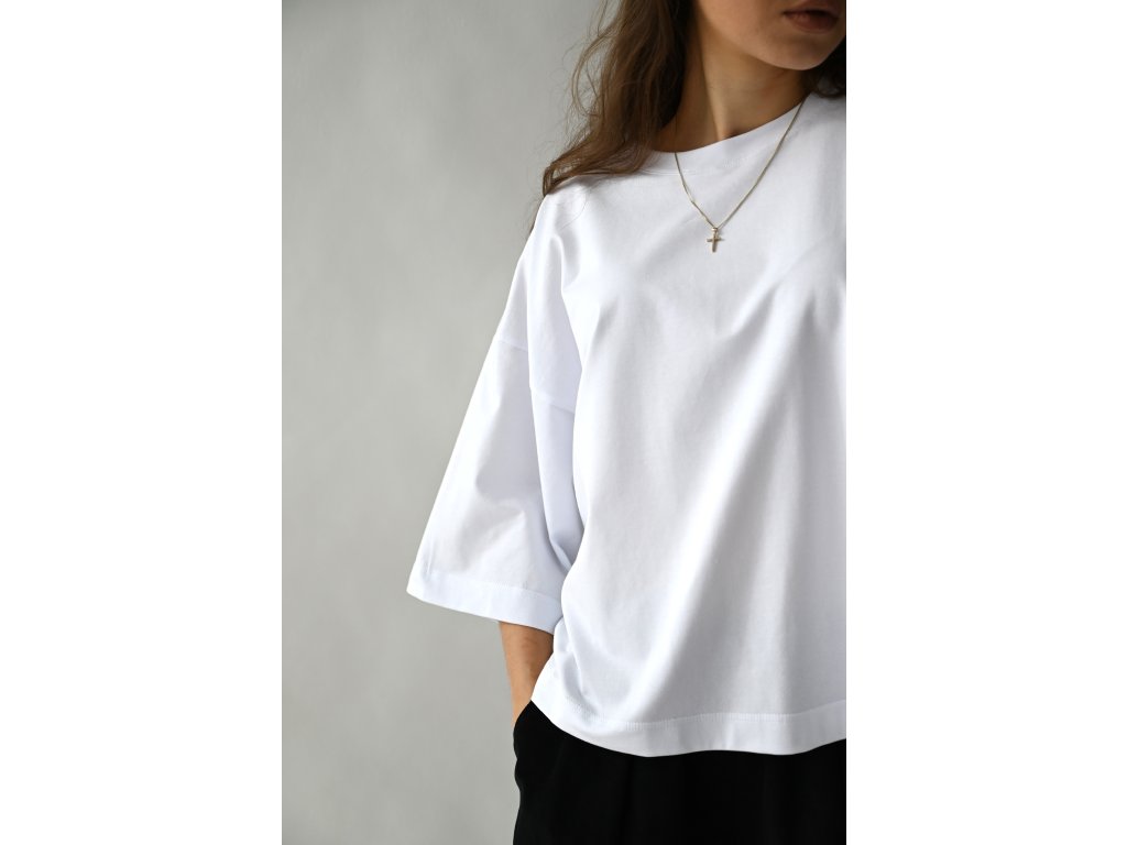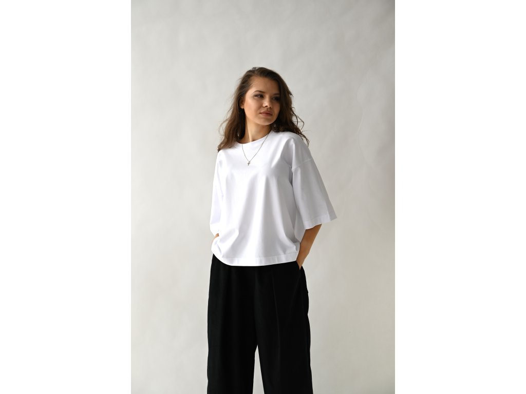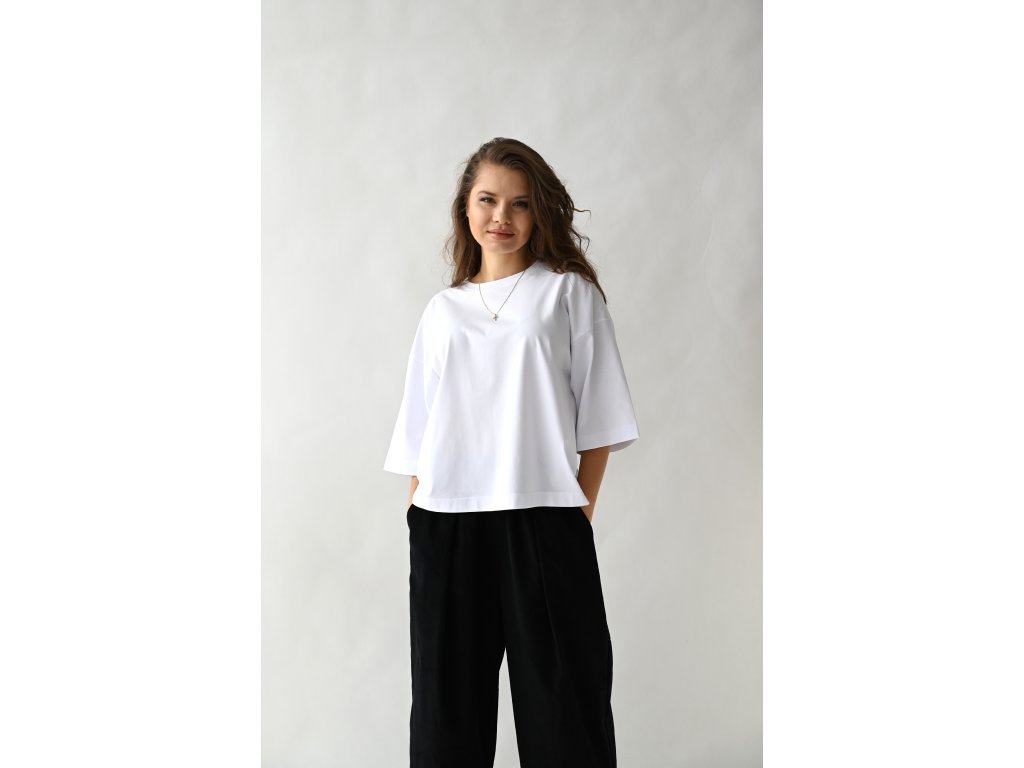 T-shirt top ušitý z čistě bílé tričkoviny s certifikátem Oeko-tex.