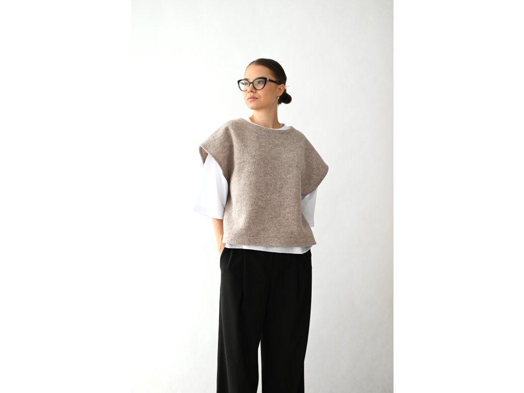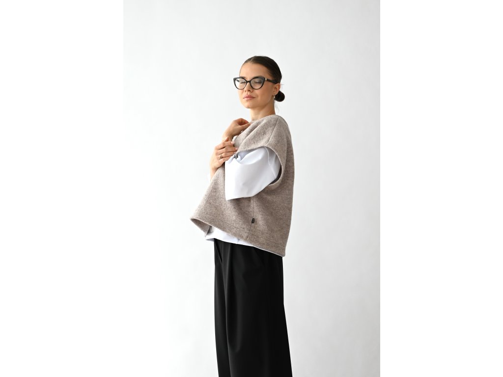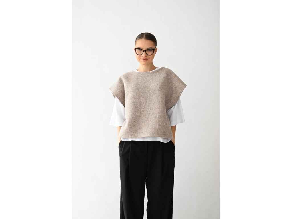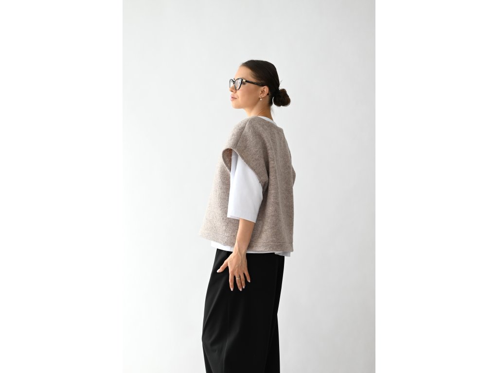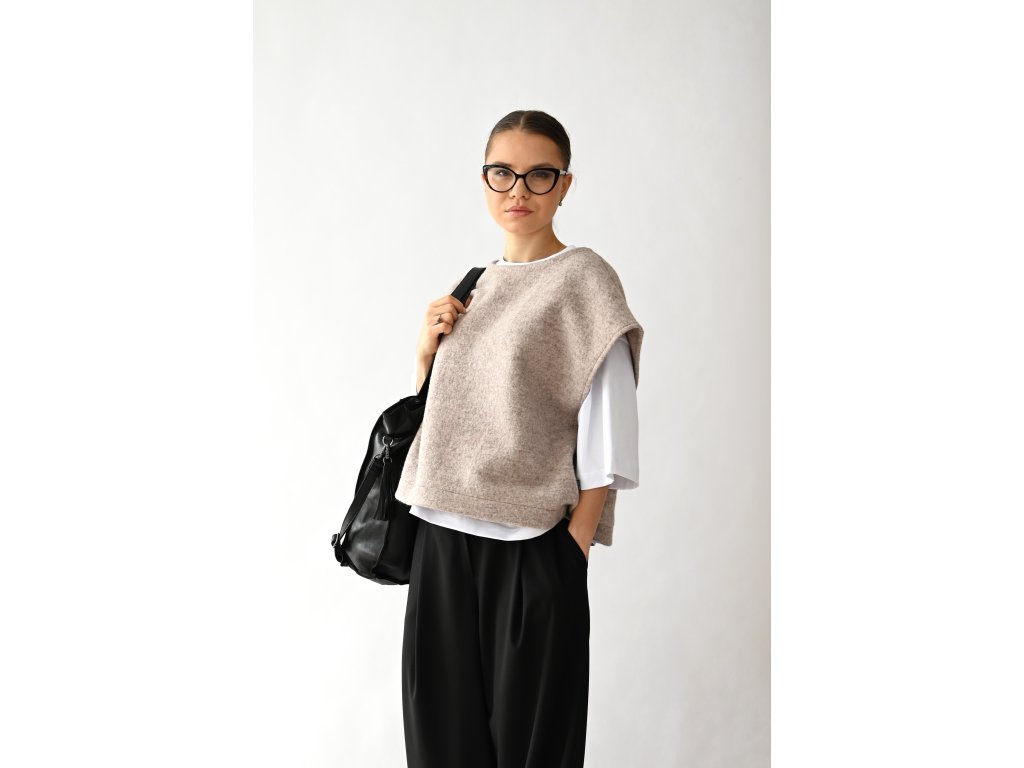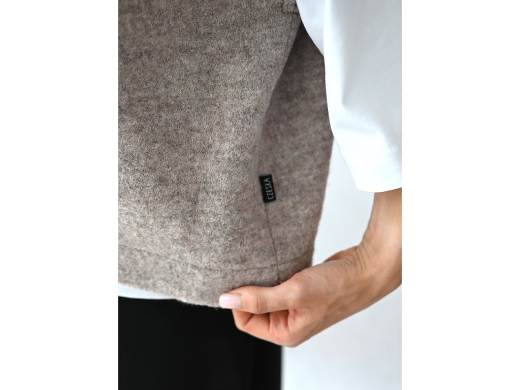 Vestičky se drží na špičce oblíbenosti už řadu let. Přivítejte teplou zimní variantu z čisté vlny. Střih je typu V, takže se směrem dolů lehounce zužuje. Má spadený ramenní šev a velké průramky, takže ji pohodlně oblečete i přes pánskou košili, oversize triko nebo riflovou bundu. Spodní část je podložená a prošitá, aby okraj držel krásně tvar.