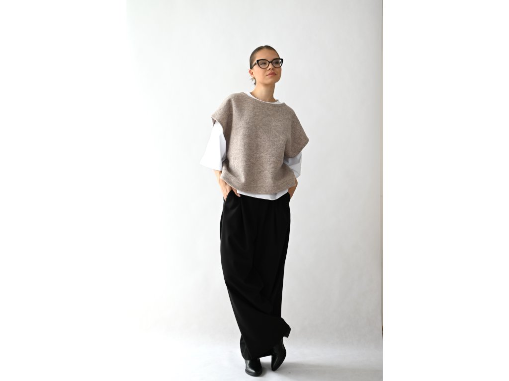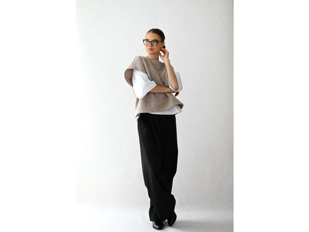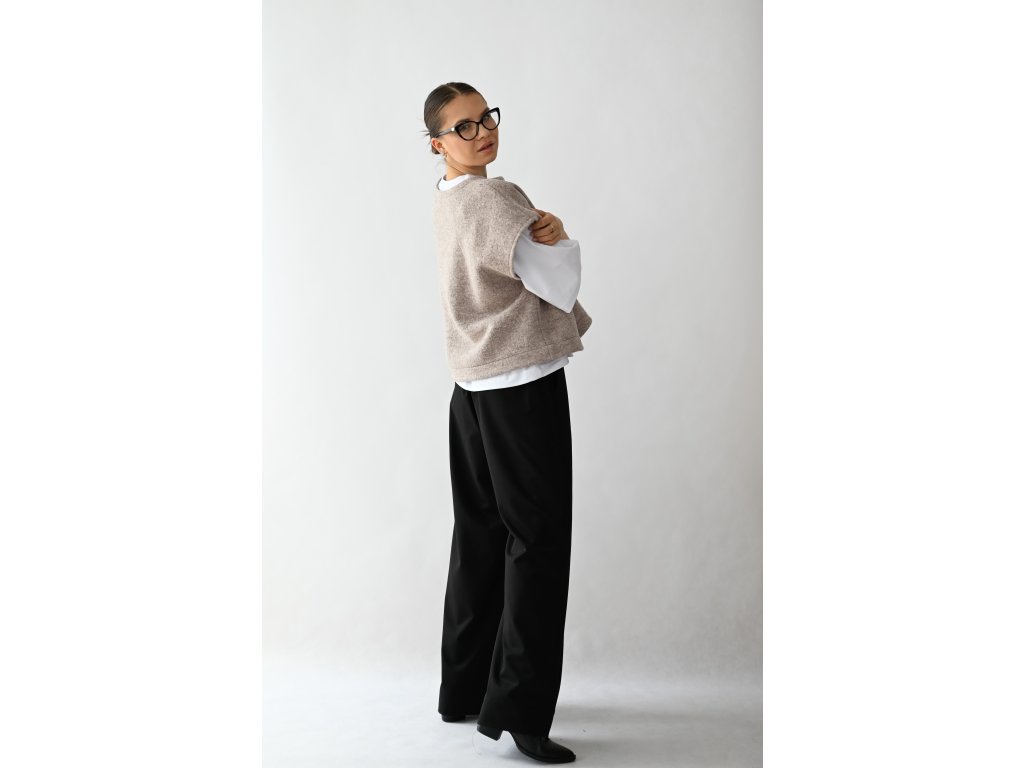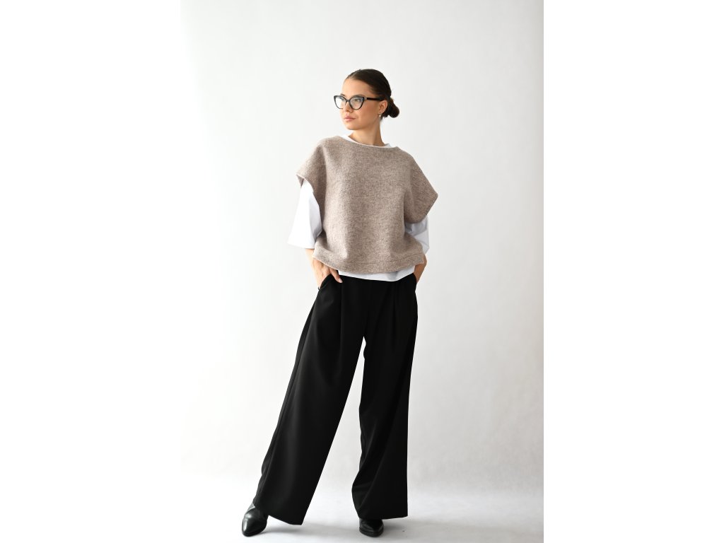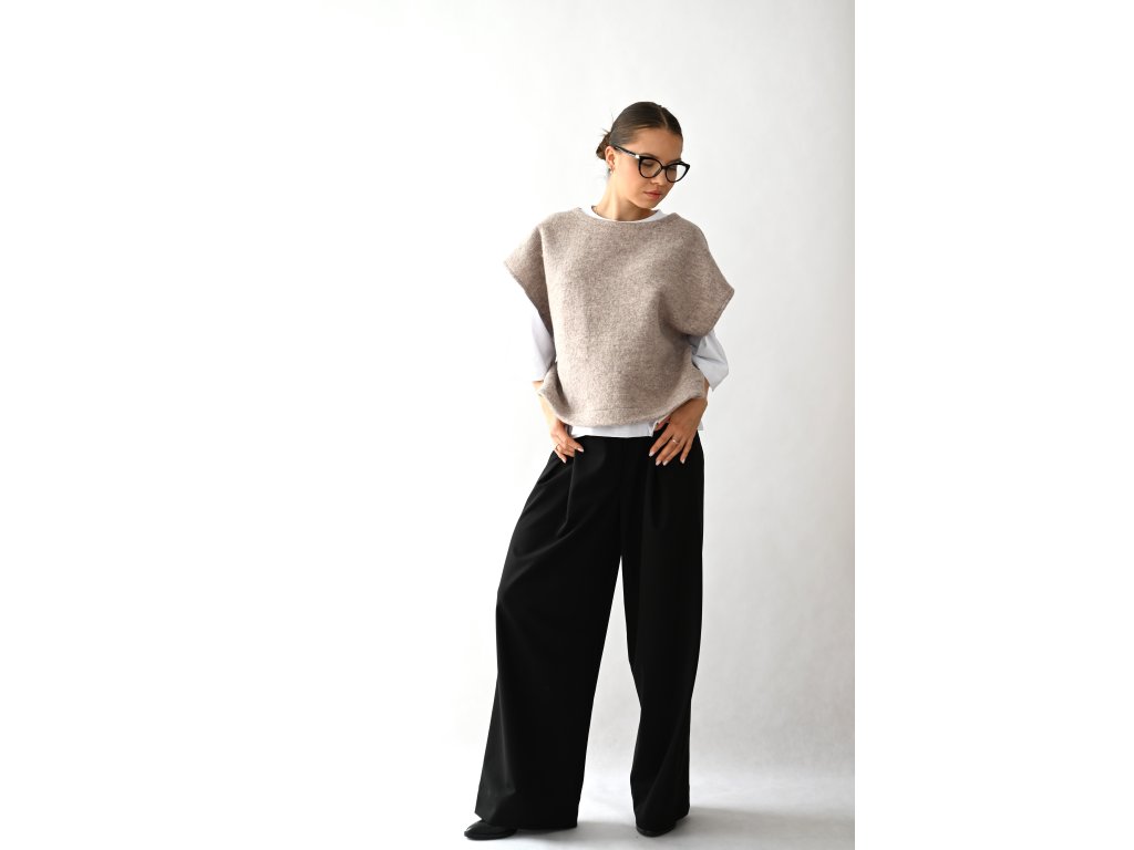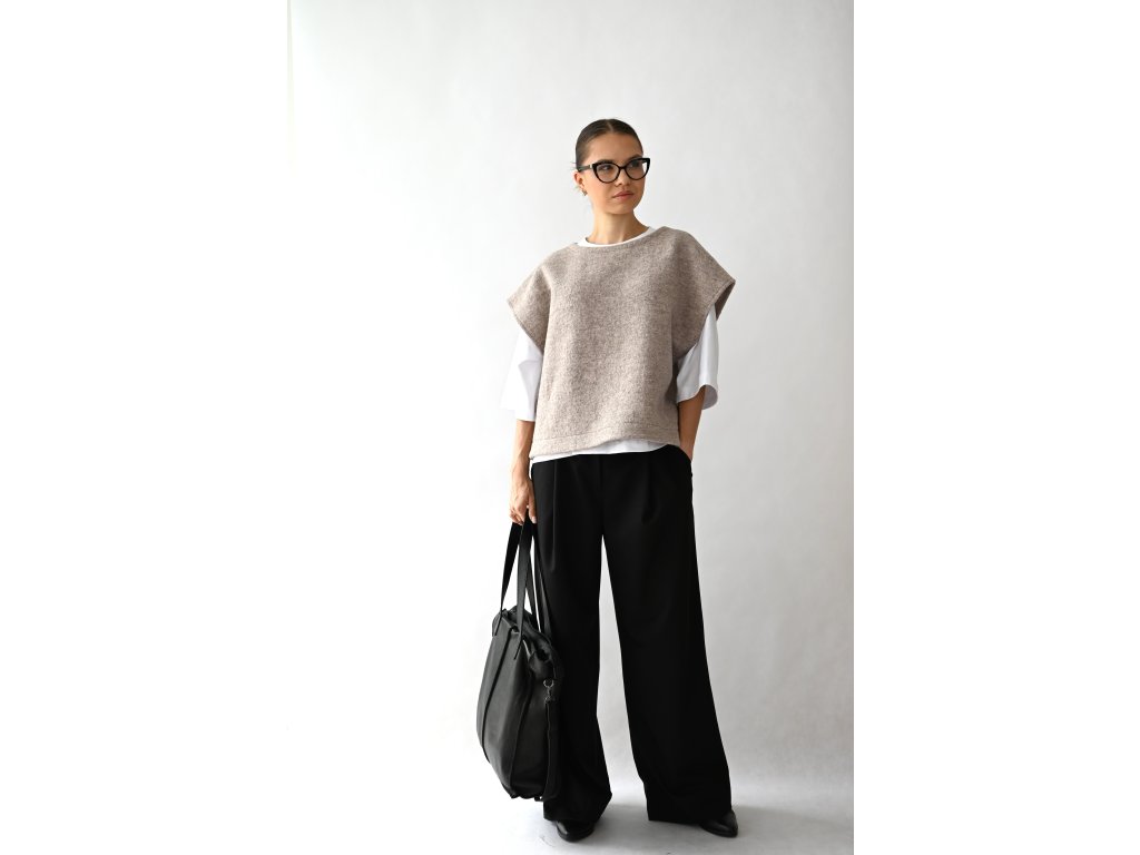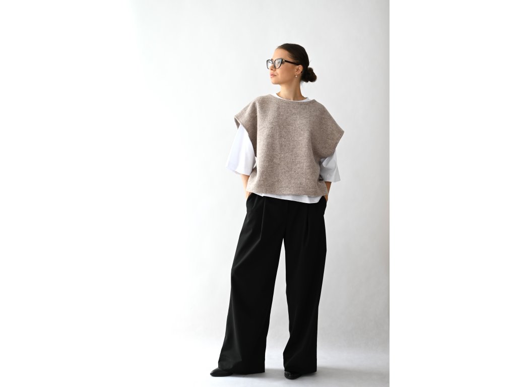 Vestičky se drží na špičce oblíbenosti už řadu let. Přivítejte teplou zimní variantu z čisté vlny. Střih je typu V, takže se směrem dolů lehounce zužuje. Má spadený ramenní šev a velké průramky, takže ji pohodlně oblečete i přes pánskou košili, oversize triko nebo riflovou bundu. Spodní část je podložená a prošitá, aby okraj držel krásně tvar.